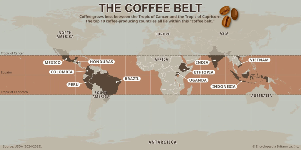 • Latin America: The largest exporters of coffee worldwide, with Brazil alone supplying about 40% of the global market.