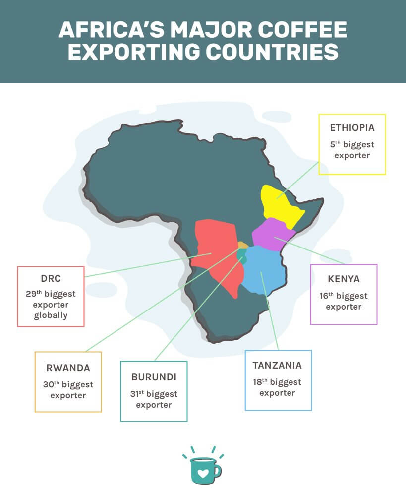 Ethiopia, Uganda, Kenya, Tanzania, and Rwanda are among the leading producers, each offering unique flavor profiles.